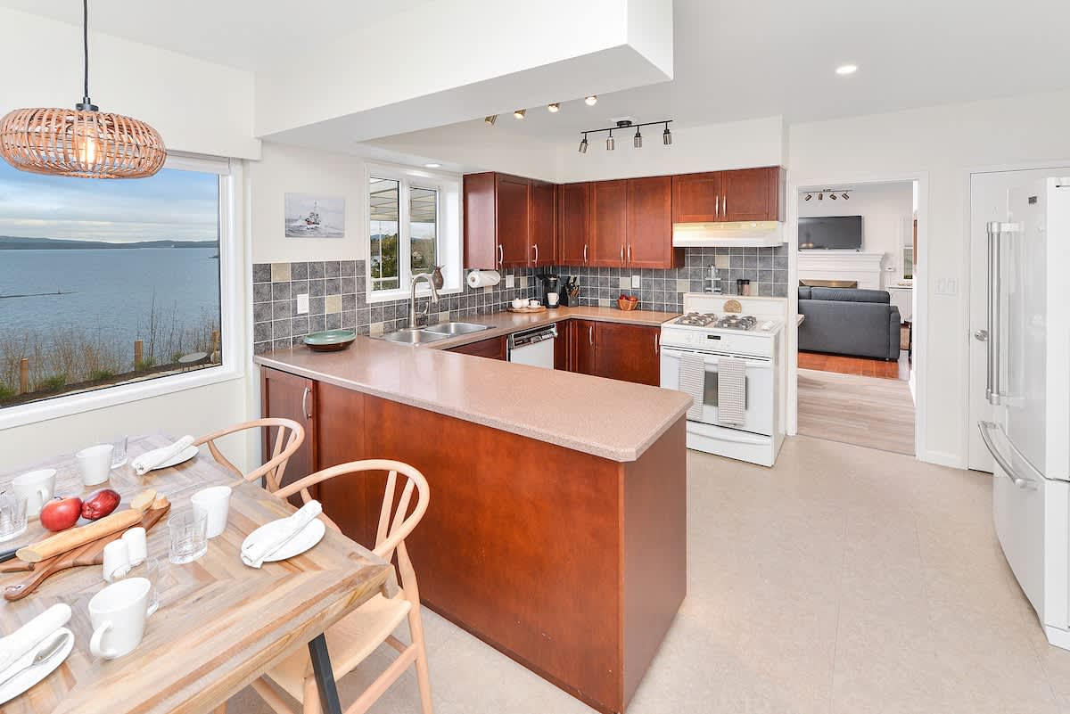 Stayed here for a Christmas with Chemainus family . A GREAT stay . The host set up a Christmas tree and decorations to make it extra welcoming ! The kitchen was well appointed - the house very clean ! We don’t know there was a hitting so that was a great surprise ! Unfortunately the weather was not conducive to using the outside area but it looks like it would be great for summer weather ! Great overall stay ! Thank you