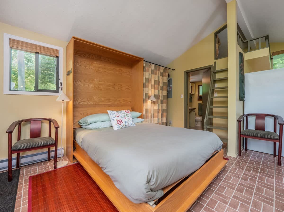 This quaint lakeside studio cottage is a quiet retreat from the noise, the hustle and bustle and the stress of city life. Relax amid the sounds of nature, quiet breezes and the call of the loons.